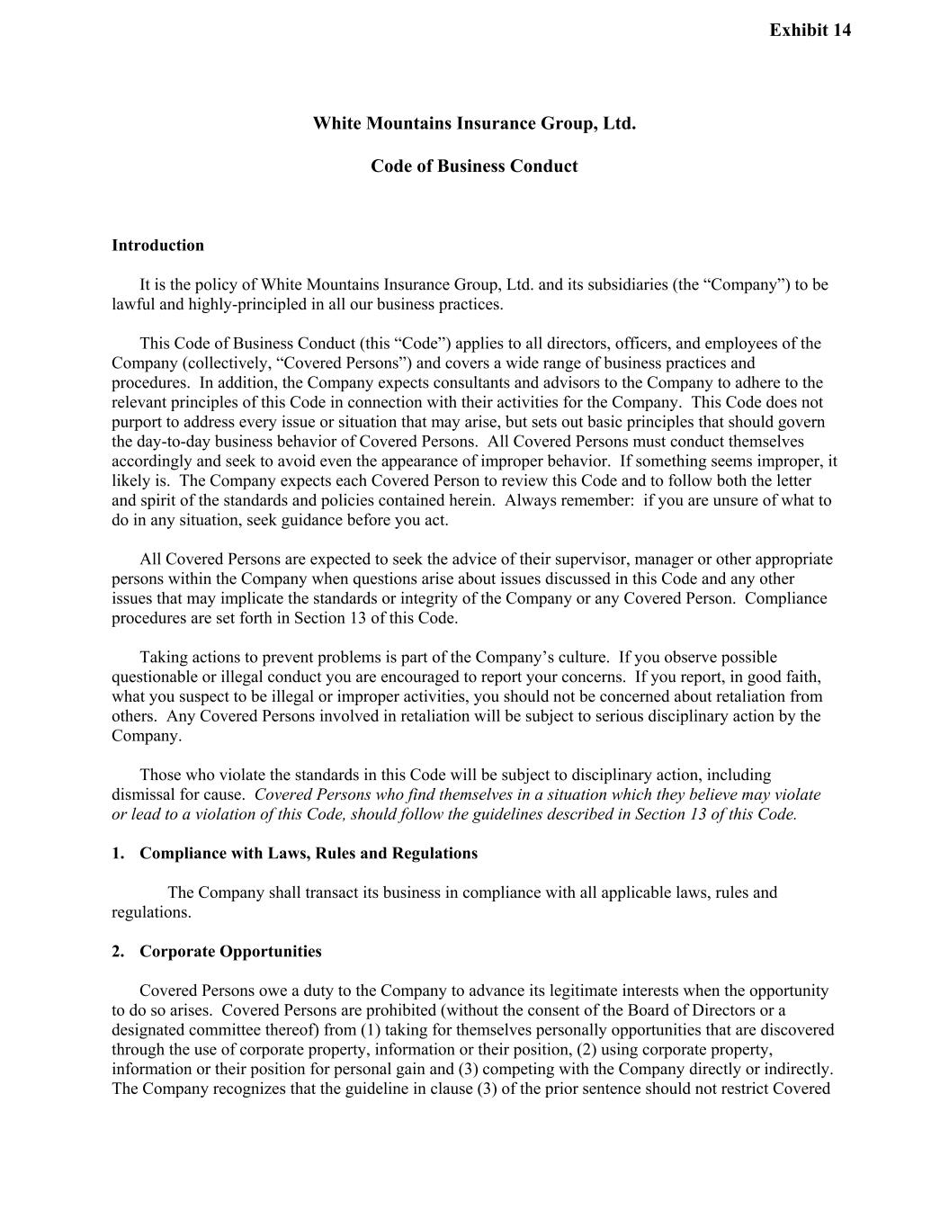 WHITE MOUNTAINS INSURANCE GROUP, LTD.