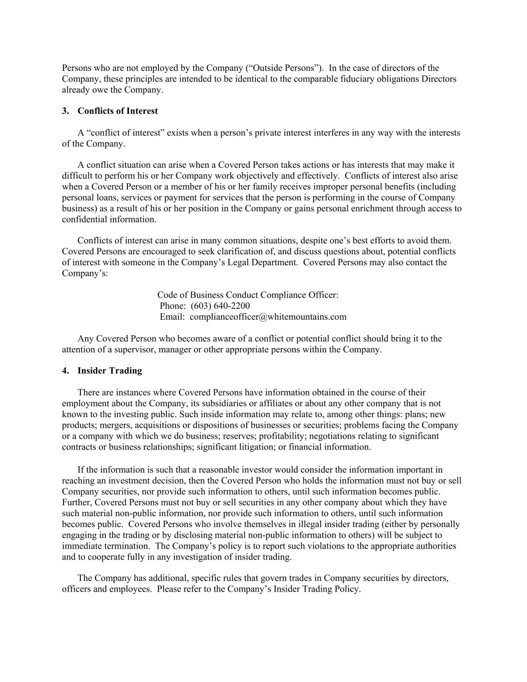 White Mountains is engaged in the business of making opportunistic and value-oriented acquisitions of businesses and assets in the insurance, financial services and related sectors, operating these businesses and assets through its subsidiaries and, if and when attractive exit valuations become available, disposing of these businesses and assets.